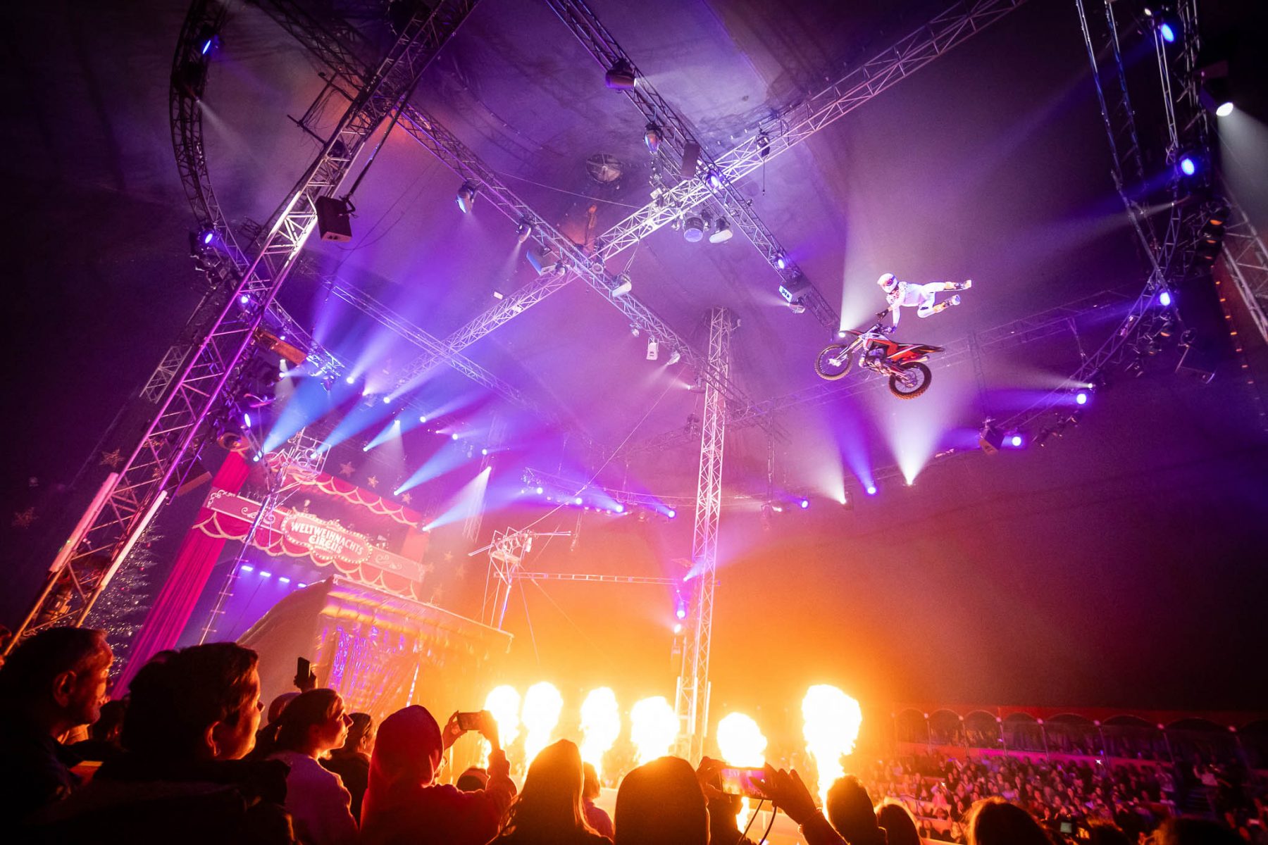 Während das Publikum über fliegende Motorräder, das doppelte Todesrad und eine „Meerjungfrau“ unter der Zirkuskuppel staunt, freuen wir uns, bereits mehr als 25 Mal als Technikdienstleister dabei zu sein.